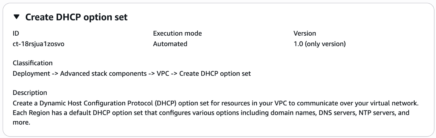 Full classification: Deployment | Advanced stack components | VPC | Create DHCP option set