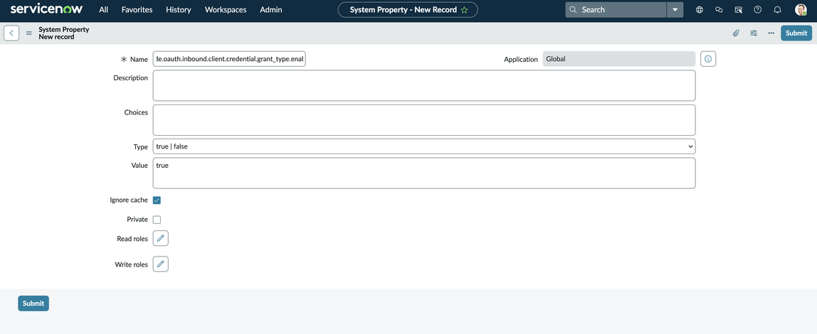 glide.oauth.inbound.client.credential.grant_type.enabledtrue,类型为 true | false